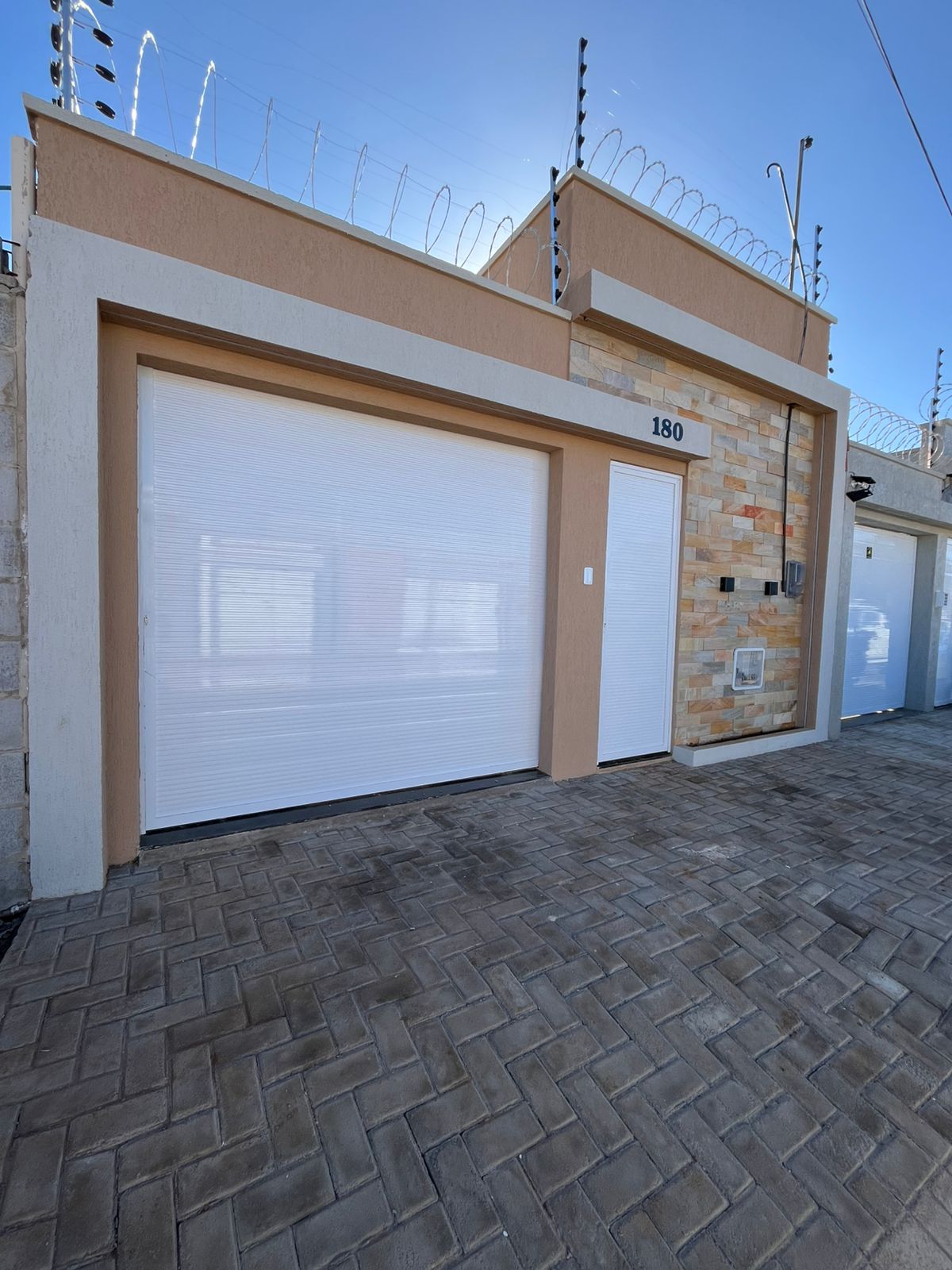 A cozinha possui balcão em L em granito travertino, além de projeto de iluminação 100% em LED, ripado em gesso e efeito mármore. O imóvel dispõe ainda de área de serviço coberta, churrasqueira com pia, garagem para 2 vagas (1 coberta) e fachada moderna com bica revestida em pedra natural.